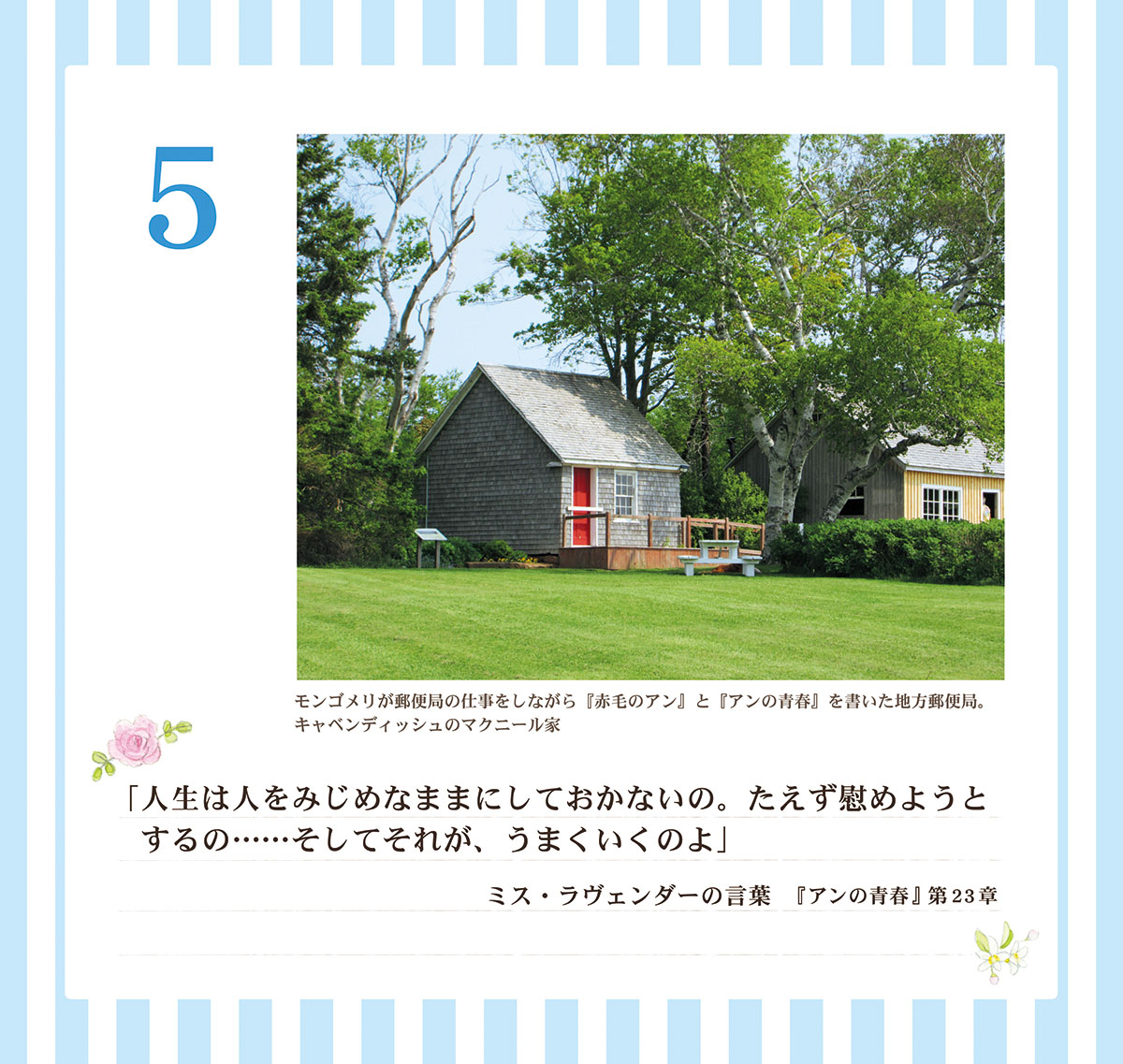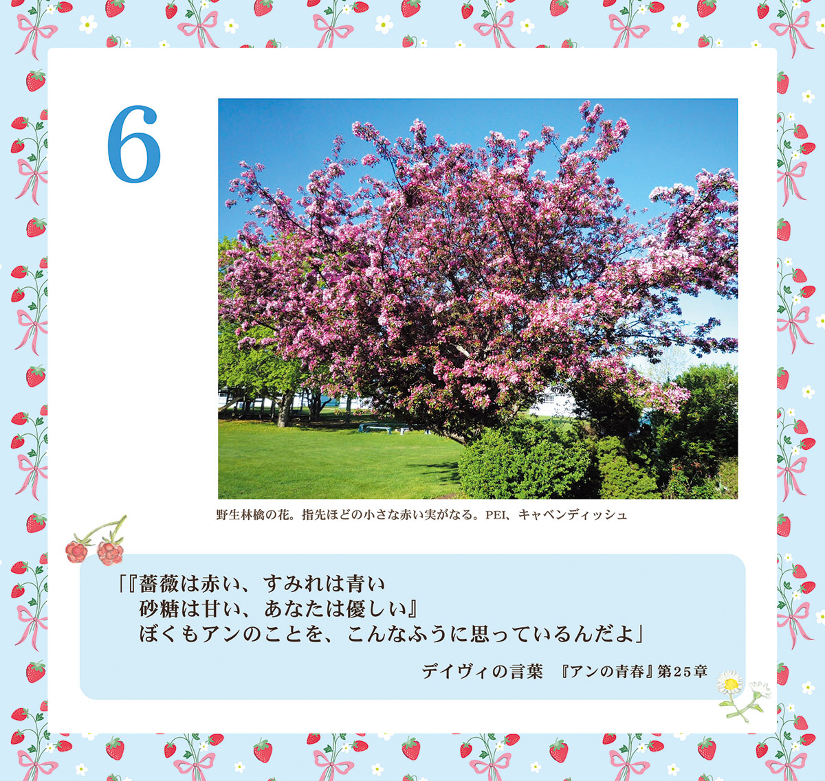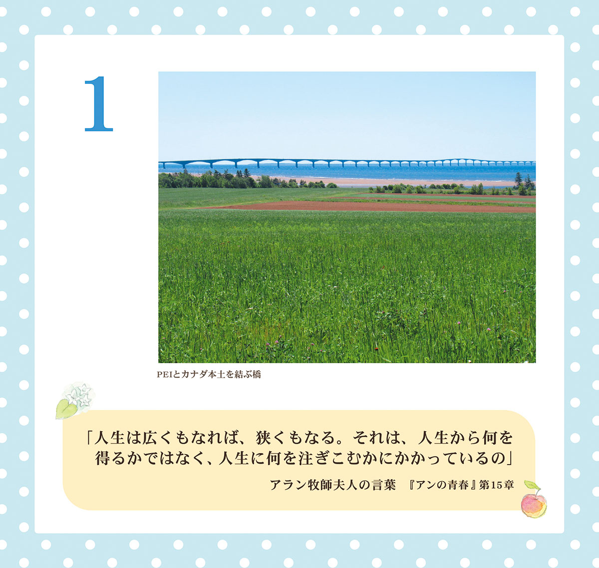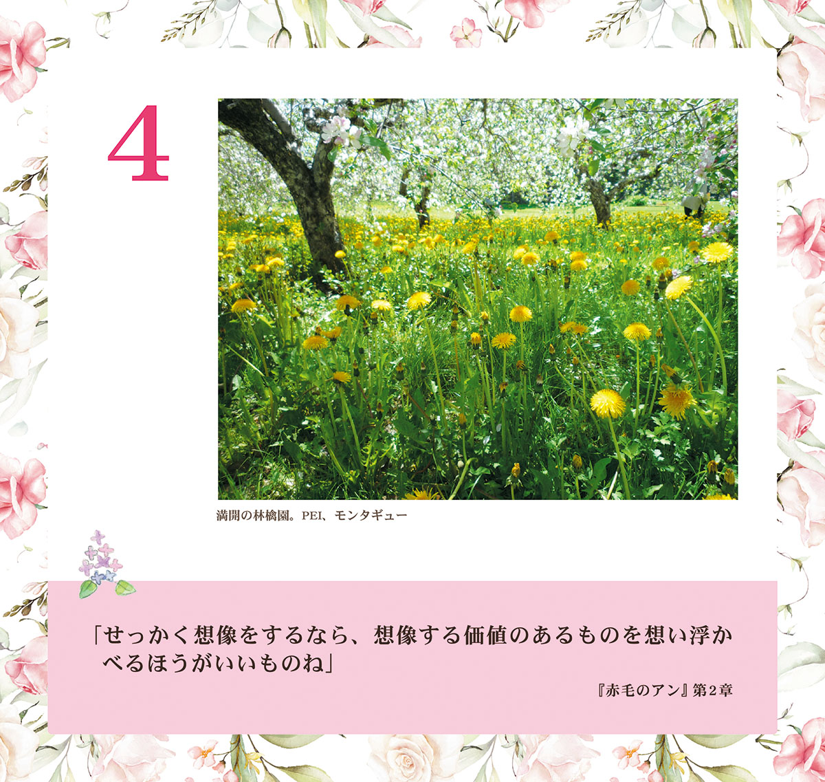 「『赤毛のアン』シリーズから、幸せな気持ちになる言葉を選び、カナダの写真を添えました。