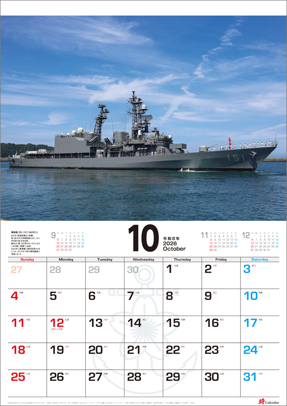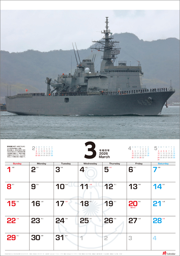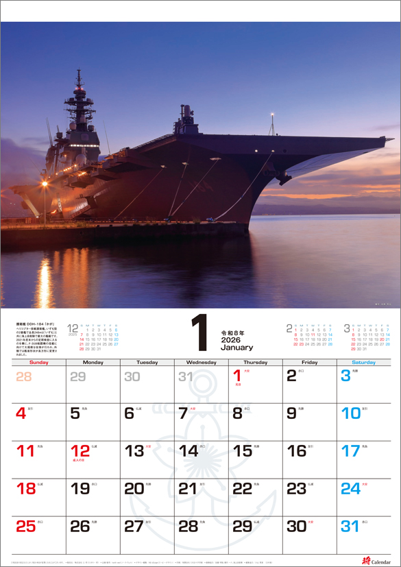 「将」海上自衛隊 A2 2026年カレンダー CL-818